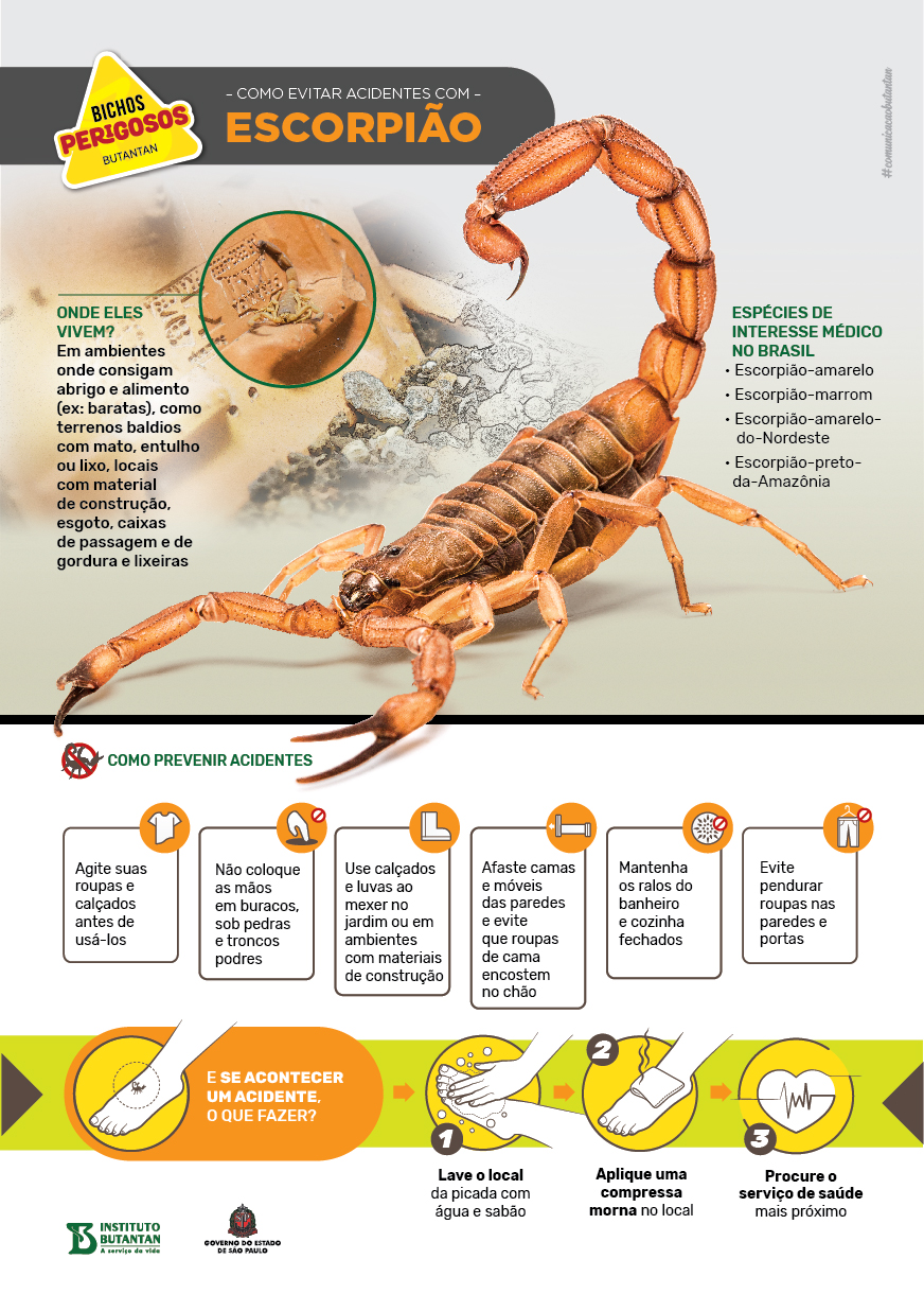 No Brasil, o escorpião-amarelo (Tityus serrulatus) é o responsável pela maioria dos casos graves de envenenamento. Isso acontece devido, principalmente, à sua fácil capacidade de adaptação a ambientes antropizados (ou seja, que foram significativamente alterados pela ação humana). Outro detalhe é que as fêmeas da espécie conseguem se reproduzir sozinhas, sem necessidade de acasalamento com um macho, por conta de um fenômeno conhecido como partenogênese – o que ajuda a explicar a rápida disseminação do animal.