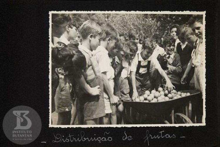 Distribuição de frutas pelos alunos. Foto: Acervo Instituto Butantan/Centro de Memória