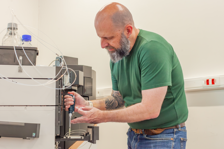 Dentro da complexa mistura de centenas de moléculas que compõem o veneno, os cientistas buscaram separar e identificar somente as proteínas – uma análise chamada de proteômica, expertise de Daniel. Para isso, o primeiro desafio foi transformar a secreção viscosa e amarelada em uma solução (mistura homogênea), que é a forma adequada para que os equipamentos de laboratório possam processar a amostra.